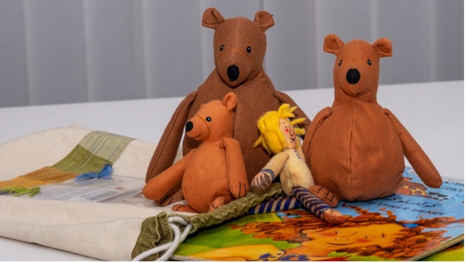 Innholdet i en av eventyrposene. Foto: Det flerspråklige bibliotek