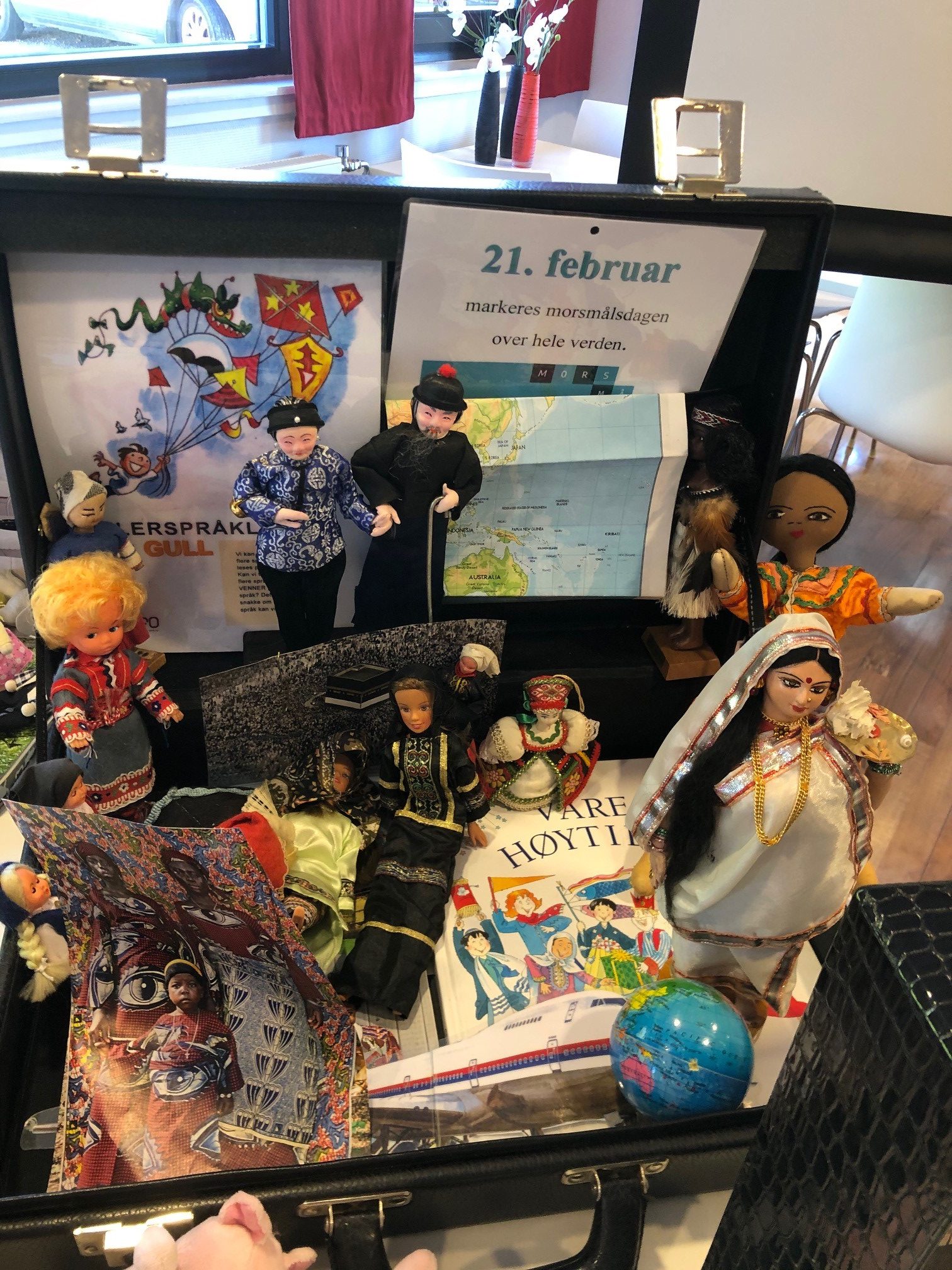I forbindelse med morsmålsdagen 2023 lagde Minoritetsspråklig førskoleteam i Duestien barnehage eventyrkofferter som en del av en større utstilling. Charlotte Hegge Wærstad skriver: «Her kunne personalet få litt inspirasjon og hente bøker på forskjellige språk med konkreter. Det var flere avdelinger som tok med noen av barna og så på utstillingen sammen. Vi har for eksempel laget en koffert full av «Barn som meg» der kan vi finne et transportmiddel og leke at vi reiser ut i verden.»