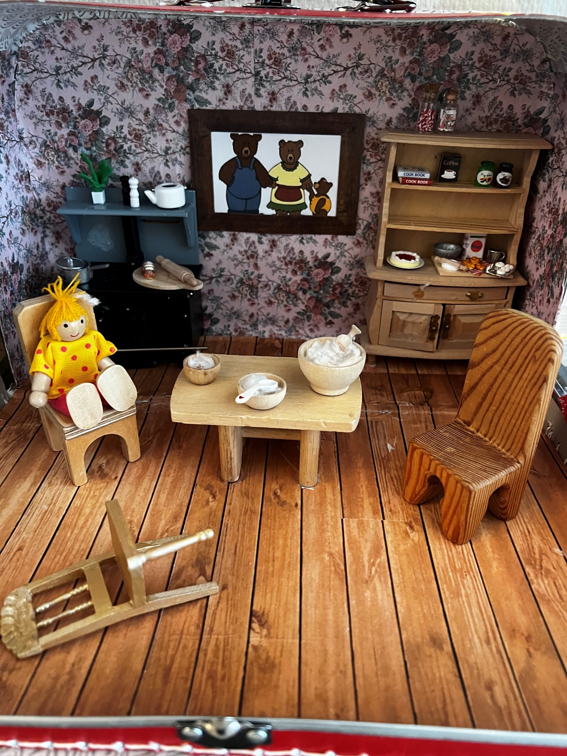 Marianne forteller at «det ble tatt utgangspunkt i eventyr og bøker barna kjenner til, men også noen nye. Vi har stort fokus på litteraturformidling i barnehagen, og språkkoffertene tar vi ofte ned for å bruke sammen med barna eller etter barnas egne ønsker. Vi pleier å sette dem opp tilgjengelig for barna for å skape et innbydende lekemiljø, både inne og ute. Vi ser at koffertene er noe som blir brukt hver dag og i flere ulike situasjoner, for eksempel både i smågrupper, men også tidlig på morgenen når barna sier hadet til foreldrene sine. Når vi har dem så tilgjengelige, er det enkelt for ansatte å finne frem en koffert og enten sette opp for å lage et lekemiljø, eller ta med seg en gruppe for å formidle og leke. Foreldrene har gitt tilbakemelding på hvor fint det er å ha koffertene så lett tilgjengelig, og at det er inspirerende å få formidlet bøker og eventyr på en annerledes måte.»
