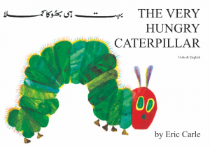 Boka handler om en larve som spiser mer og mer ettersom dagene går. Til slutt blir larven til en sommerfugl. På norsk heter boka Lille larven aldri mett.
