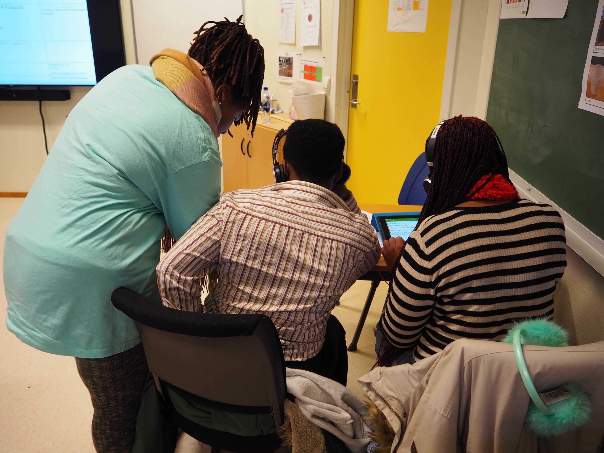 En dag er vi så heldige at vi får være på besøk i en grunnskoleopplæring for voksne på Karmøy når klassen skal ha norsk. Det er to flerspråklige assistenter knyttet til denne klassen. Deltakerne i klassen har liten eller ingen skolebakgrunn fra hjemlandet. Mange av deltakerne kommer fra land hvor flerspråklighet ofte er normen, og er derfor vant til å forholde seg til flere språk i ulike situasjoner i det daglige. Heldigvis for deltakerne er også de flerspråklige assistentene er svært språkkyndige og kan snakke med deltakerne på flere språk.