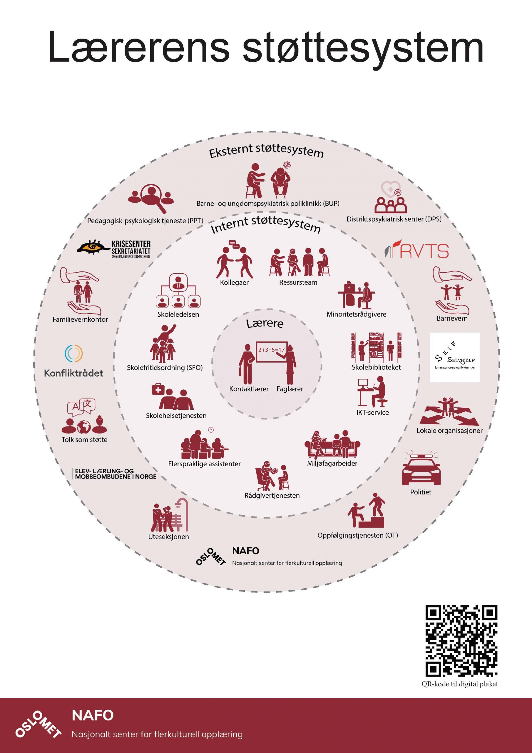Lærerens støttesystem kan henges på personalrom, teamkontor eller andre steder på skolen for å synliggjøre hele apparatet som arbeider sammen med kontaktlærer og faglærer rundt eleven. Størrelse A3
