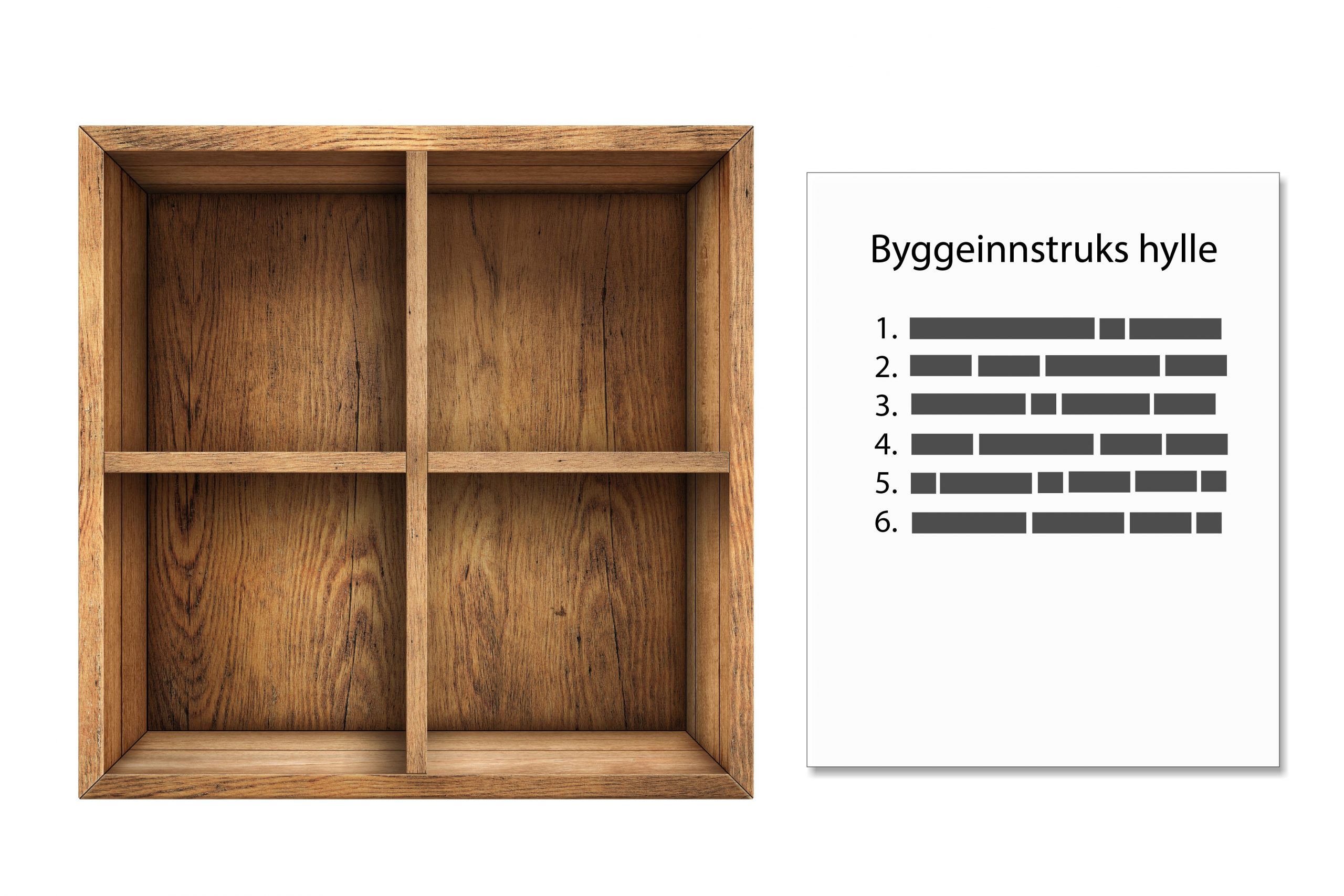 Etter at hyllene er bygget ferdig er det tid for tekstproduksjon, i forlengelsen av det praktiske arbeidet i verkstedet. Bildene elevene tok brukes som støtte til teksten de nå skal skrive. Det skriftlige sluttproduktet er en dokumentasjon på arbeidet, med bilder og detaljert beskrivelser av fremgangsmåten i korte setninger, som ligner modellteksten de fikk før de bygget hyller.