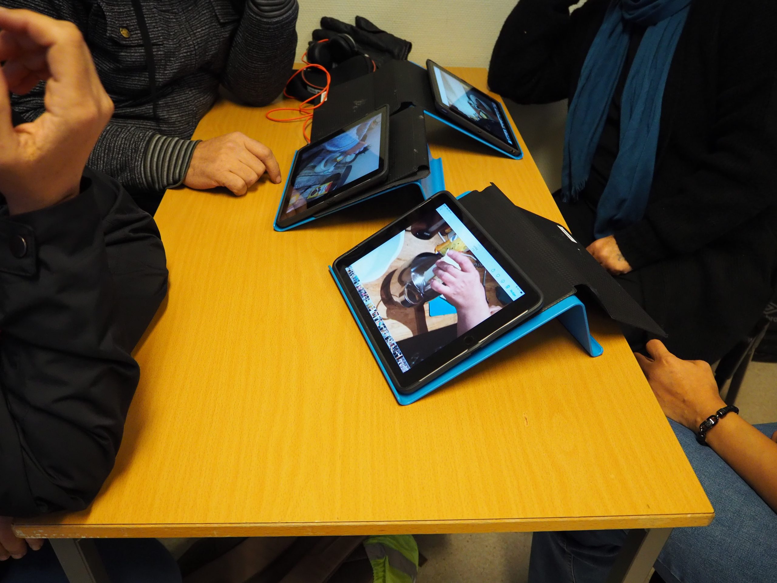 I klasserommet på Karmøy voksenopplæring skal deltakerne skrive en beskrivende tekst om å bake kake. For å forberede seg til kakebakingen som skal foregå hjemme som lekse, baker klassen kake sammen på skolen. Lærerne dokumenterer prosessen med kamera og kan dermed henge opp en oversikt over verb som er aktuelle å lære seg i denne perioden. Når deltakerne senere skal skrive tekst om kakebaking, kan de gå tilbake og se på plakaten om de ikke husker verbene de trenger.